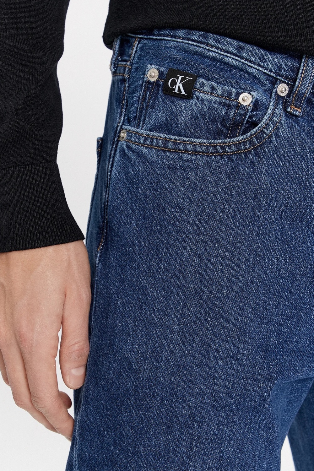 Jeansi din colectia Calvin Klein Jeans cu fason relaxed cu talia inalta. Model confectionat din denim ceruit.