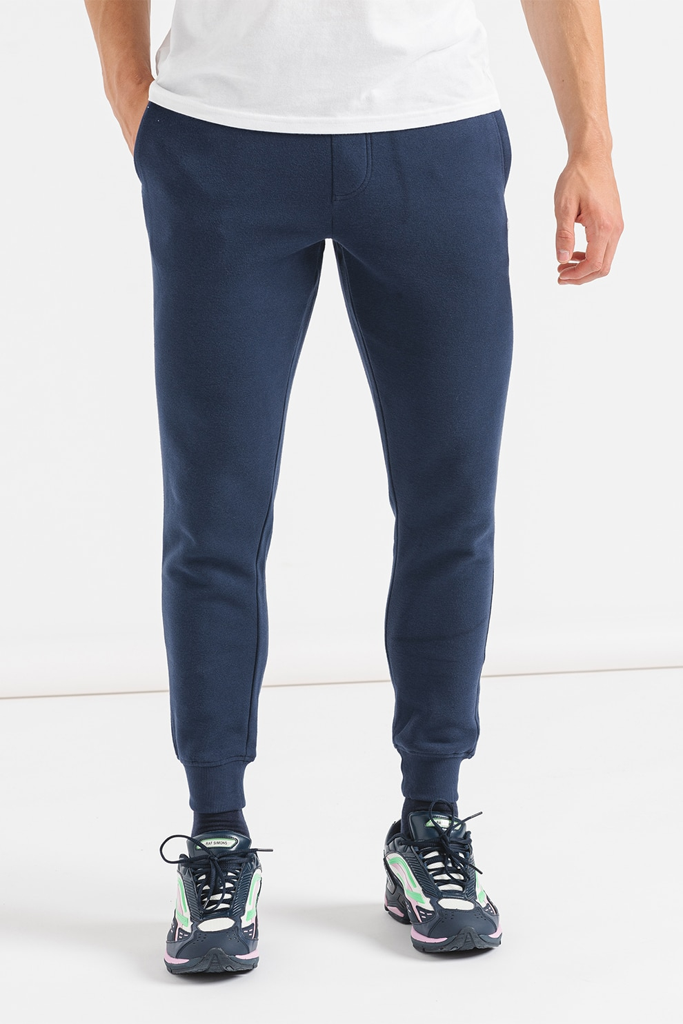 PANTALONI DE TRENING, PENTRU BĂRBAȚI, CU DOUĂ BUZUNARE, CULOARE UNITĂ, TALIE CU ȘNUR, CU LOGO